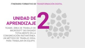 Unidad de Aprendizaje 2. Teams. Área de trabajo de Microsoft 365 basado totalmente en la comunicación instantánea. Un método de trabajo ideal para trabajar en equipo.