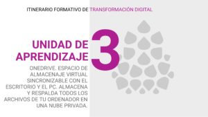 Unidad de Aprendizaje 3. OneDrive. Espacio de almacenaje virtual sincronizable con el escritorio y el pc. Almacena y respalda todos los archivos de tu ordenador en una nube privada.