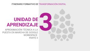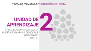 Cuarto itinerario: estará dedicado a los profesionales IT, Google Workspace, de las entidades y a sus órganos directivos, se trata de un itinerario corto de orientación en relación a las soluciones más viables del mercado en cuanto a implantación de espacio de trabajo virtual y servicios de nube, así como orientaciones apara su puesta en marcha y configuración, dentro del entorno de Google Workspace.