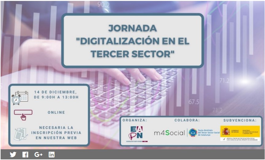 El 14 de diciembre hemos tenido la oportunidad de explicar nuestra experiencia con el proyecto DigitalizaciON dentro de la jornada organizada por EAPN España y M4Social-Taula d’entitats del tercer sector.